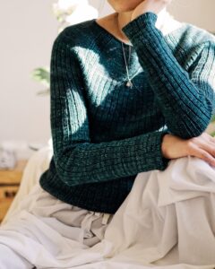 Winter Seashell Sweater has a motif that is reminiscent of a seashell. It is worked seamlessly from the top down using the simplest stitches: knit and purl stitches. No short rows nor Brioche stitch are used in the pattern, making it suitable for beginners.