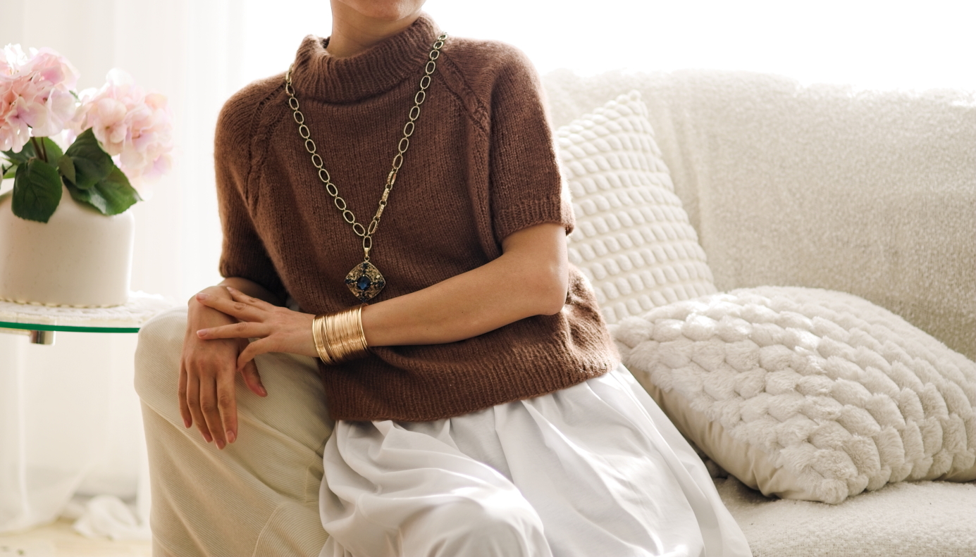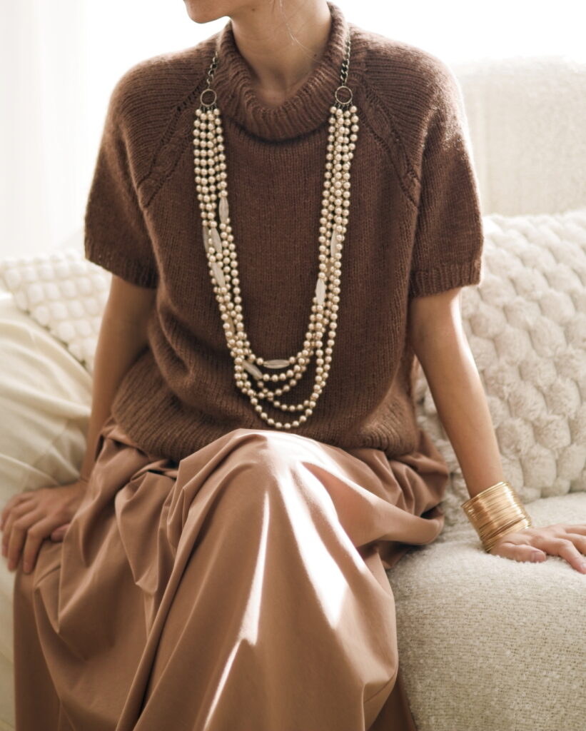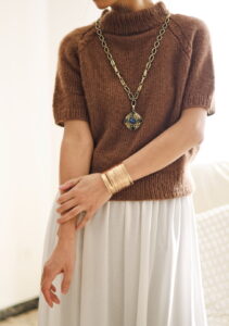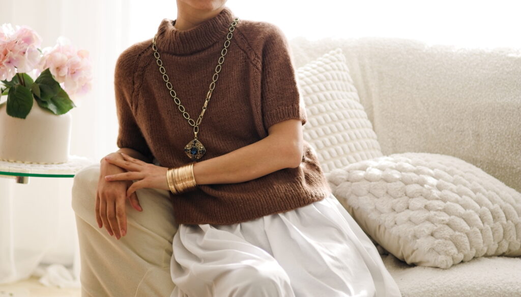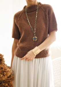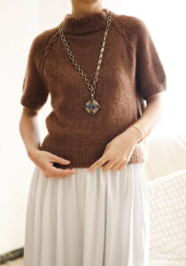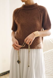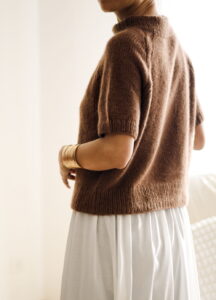 It is worked seamlessly from the top down, without the use of any short rows, making it beginner-friendly. As a top-down design, you can easily adjust the length of both the body and the sleeves.