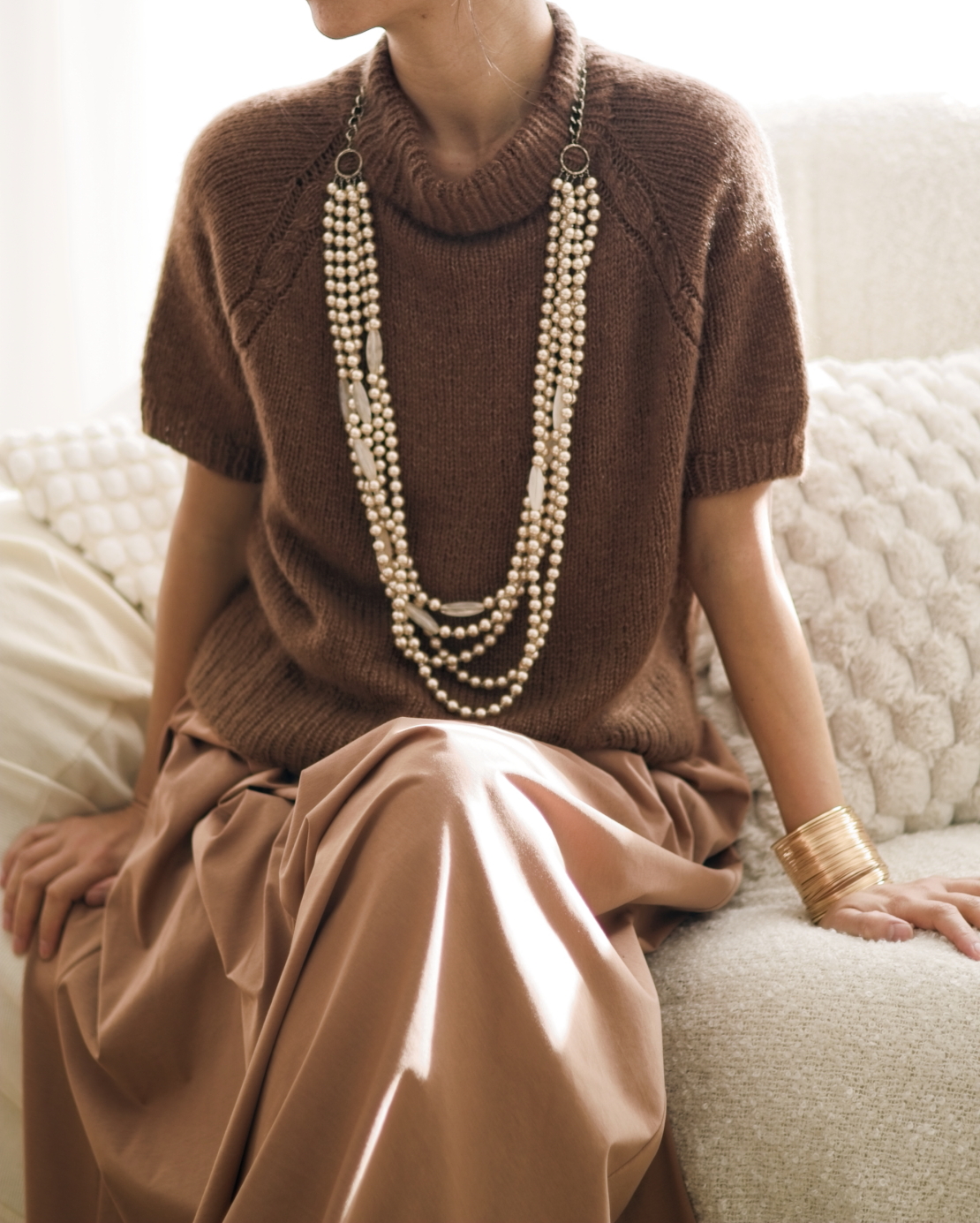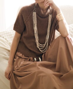 Olivia Slipover is a timeless sweater with mid length sleeves. It can be worn either alone as a tee, or layered over a long sleeve shirt.